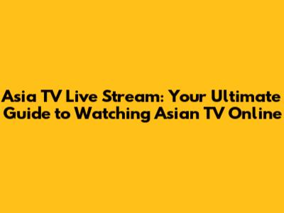 Asia TV Live Stream: Your Guide To Watching Asian TV