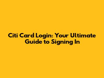 Citi Card Login: Easy Sign-In Guide