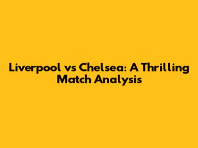 Liverpool Vs Chelsea: A Thrilling Match Analysis