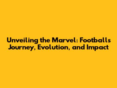Unveiling The Marvel: Football's Journey, Evolution, And Impact